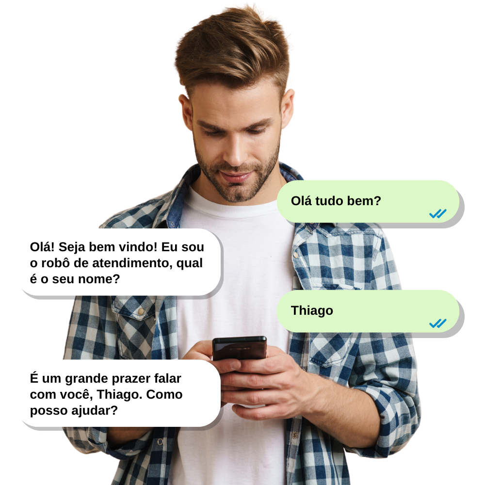 Pensando no atendimento ideal, programa-se previamente um fluxo de conversa para guiar o cliente à compra ou a um agendamento, bastando ele responder às perguntas realizadas, sem qualquer dificuldade.